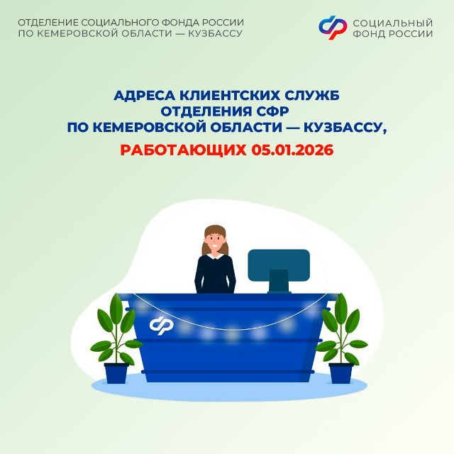 Чтобы вы могли решить важные вопросы даже в новогодние каникулы, клиентские службы Отделения СФР по Кузбассу, расположенные в крупных городах, будут работать 5 января 2026 года. Их адреса размещены в наших карточках!