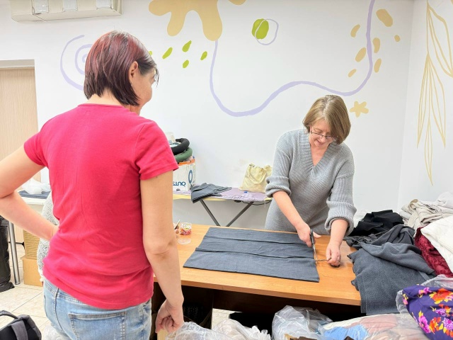 Рабочий ритм вернулся сразу: девушки кроили ткань, готовя основу для будущих изделий.