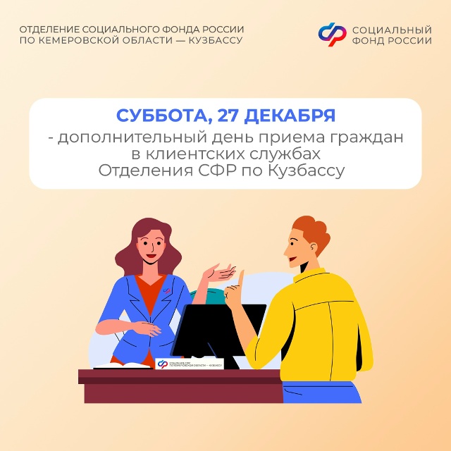 Для вашего удобства каждую последнюю субботу месяца специалисты клиентских служб регионального Отделения СФР проводят прием кузбассовцев.