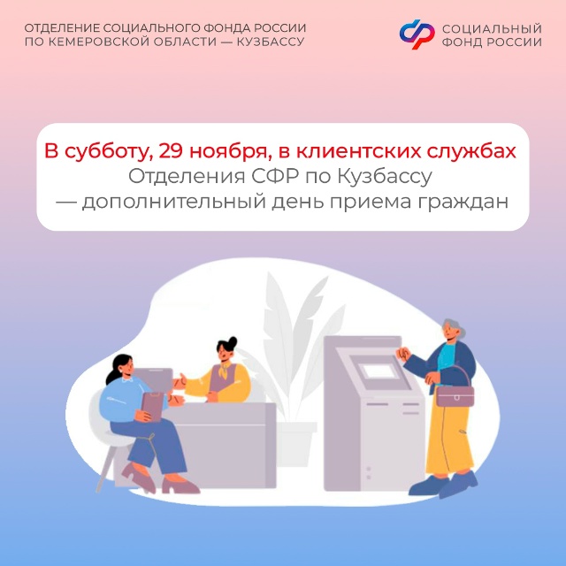Для вашего удобства каждую последнюю субботу месяца специалисты клиентских служб регионального Отделения СФР проводят прием кузбассовцев.