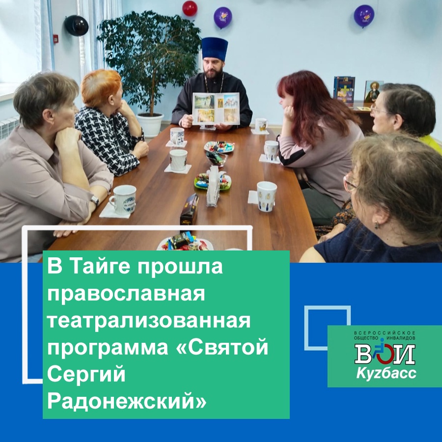 Театрализованная программа, посвященная 710-летию со дня рождения преподобного Сергия Радонежского, основателя Троице-Сергиевой Лавры. Мероприятие собрало членов Тайгинской городской организации ВОИ, желающих глубже узнать о жизни и наследии этого великого святого, учителя и наставника.