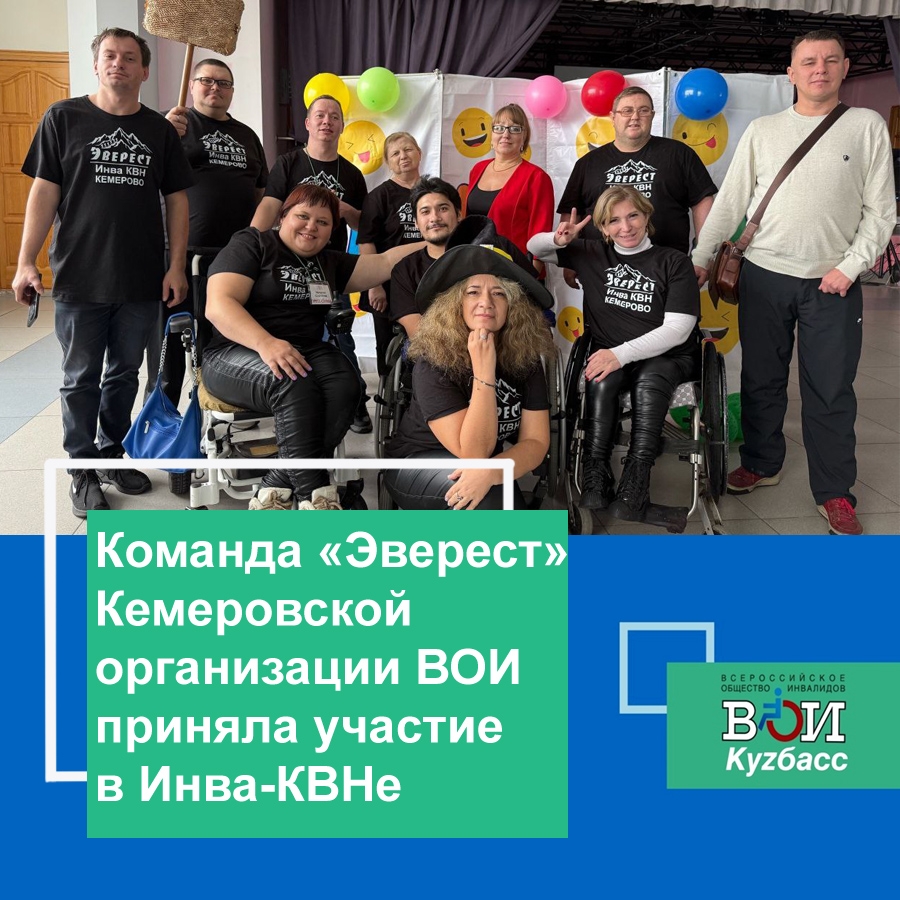 Команда «Эверест» Кемеровской региональной организации ВОИ заняла 6 место и получила диплом в номинации «Вершина непредсказуемости» и денежное поощрение. В составе команды было 10 человек Наталья Семченко, Степан Мелехин, Ольга Ткаченко, Данил Талиев, Павел Некрасов и Надежда Степанюк. Так же с нами был наш видеооператор Кирилл Демьяненко