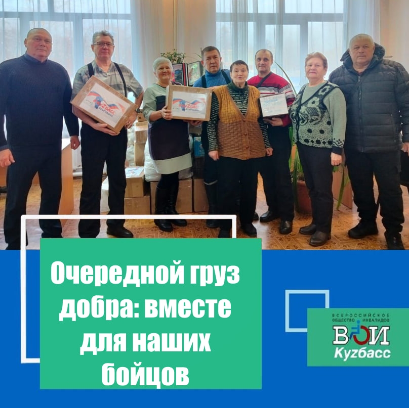 Особый вклад внесли члены Топкинской городской организации ВОИ. Несмотря на собственные трудности, они активно участвовали в сборе и упаковке помощи. От организации бойцам переданы тёплые вязаные носки и термоноски, целебный мёд, а также предметы первой необходимости для госпиталя.