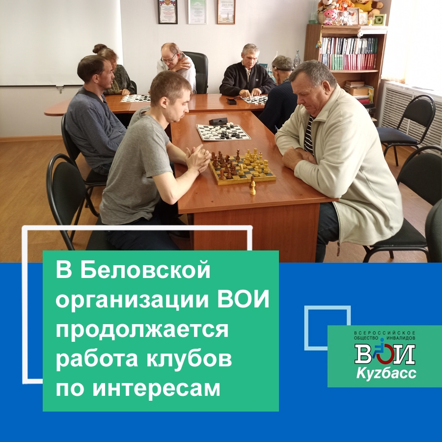 Благодаря работе клубов каждый член организации может заниматься интересным делом. Кроме этого здесь проходит общение друг с другом. Члены организации обсуждают возникающие проблемы, помогают друг другу их преодолевать. Во многих заседаниях клубов принимает активное участие старший библиотекарь Центральной библиотеки г. Белово Ирина Земляных. Она находит интересную и злободневную информацию и в доступной форме доносит её членам организации ВОИ, за что ей огромная благодарность от всей организации.