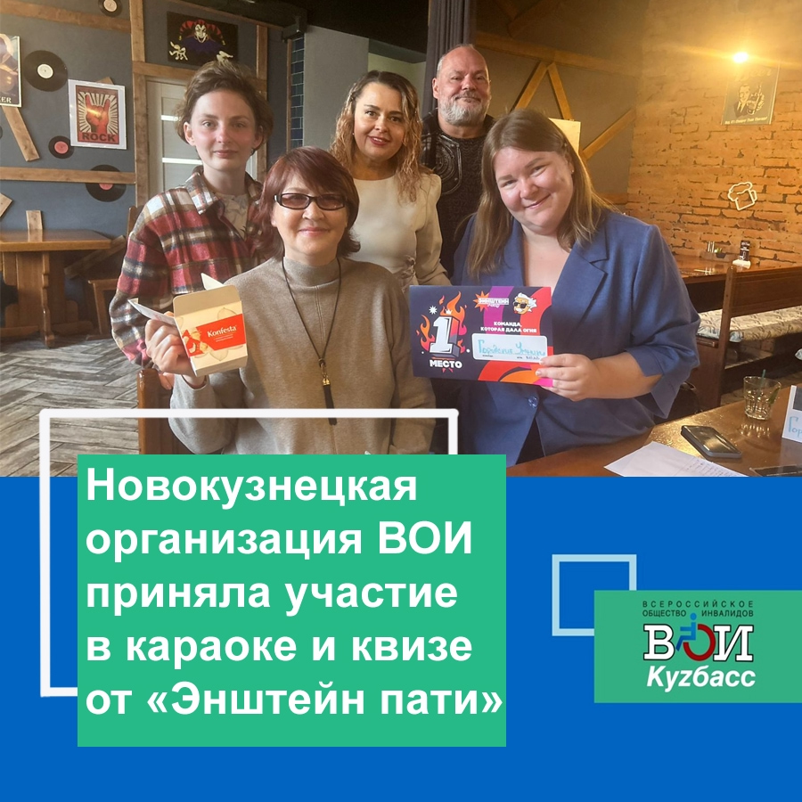 Члены Новокузнецкой организации ВОИ благодарят организатора квиза Михаила Горохова за возможность поиграть в эту интересную игру и просто хорошо провести время. А также ведущего игры Павла Оксак за подаренное настроение, ресторан Zoltan за теплый приём и за бесплатную возможность попеть в караоке и всех участников за проявленную активность, заинтересованность и азарт.