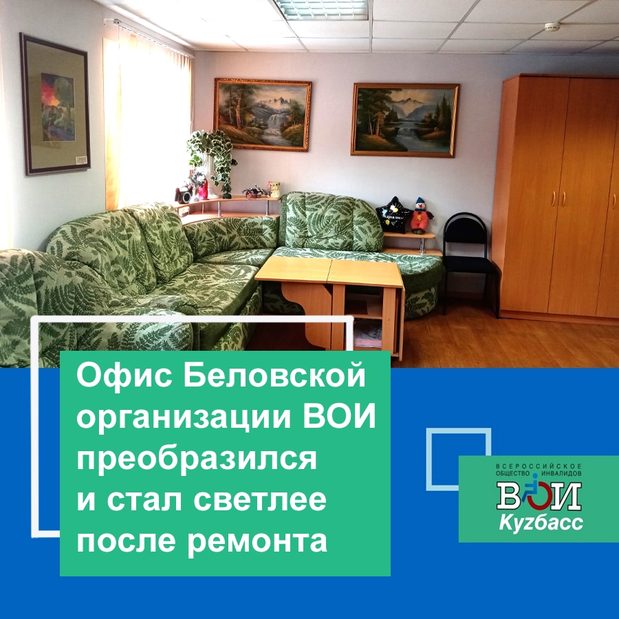 Были заменены обои, шторы, побелены потолки. В ремонте активное участие приняли члены Беловской городской организации ВОИ: Любовь Махрова, Сергей Сычихин, Владимир Кипреев, Евгений Калашников и другие. С уборкой помещений помогли члены движения «Серебряные волонтеры» Беловского городского округа.