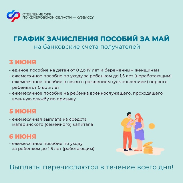 Важно: перечисления пособий осуществляются в новом месяце за предыдущий. Это значит, что в июне вы получаете пособия за май.