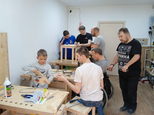 В последние несколько недель парни изготавливали деревянные макеты оружия, а также пробовали смастерить табуретки. Получилось очень хорошо.