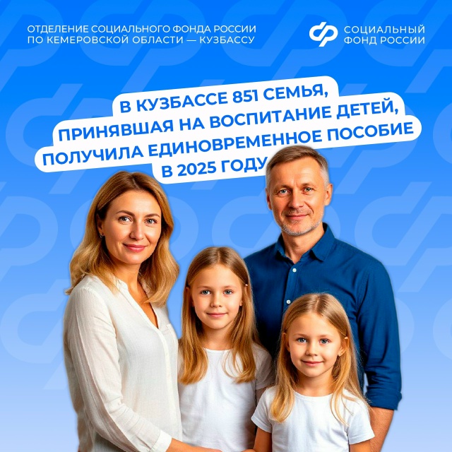 Отделение Социального фонда России по Кемеровской области выплатило единовременное пособие 851 семье, принявшей в свой дом детей. Общая сумма выплат составила 48,5 млн рублей.