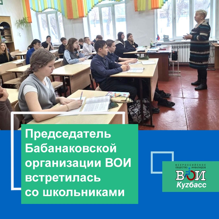 Председатель рассказала о деятельности их организации, о том, как она работает с детьми с ограниченными возможностями по здоровью. Девятиклассники узнали, что существуют специальные школы для таких детей, в которых обучение идёт по специальным программам. Есть и обучение на дому.