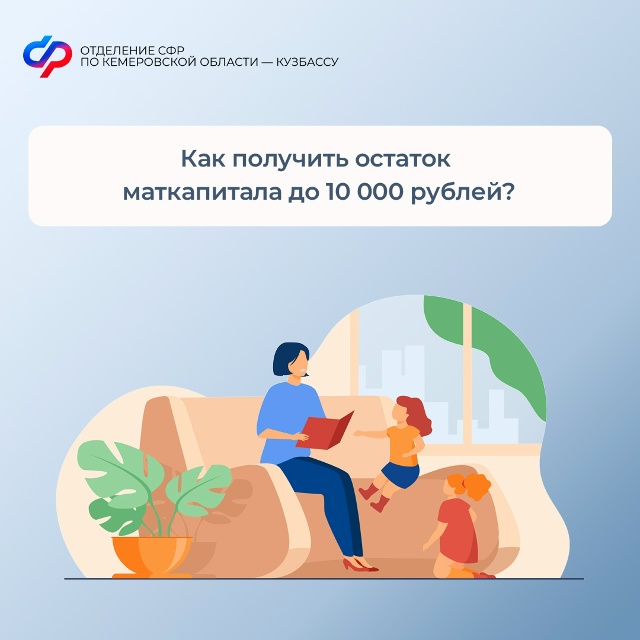 Отделение СФР по Кемеровской области напоминает: если остаток вашего материнского капитала ровно 10 тысяч рублей и меньше, то вы можете получить эти средства.