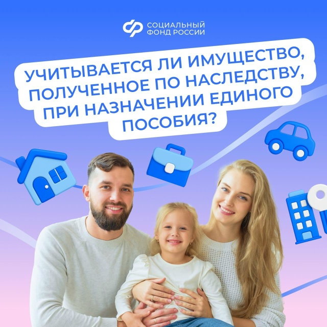 Если на момент подачи заявления у члена семьи в собственности находится имущество, которое он получил по наследству — право собственности зарегистрировано в Росреесте, то это имущество будет учитываться специалистами Отделения Соцфонда по Кузбассу.